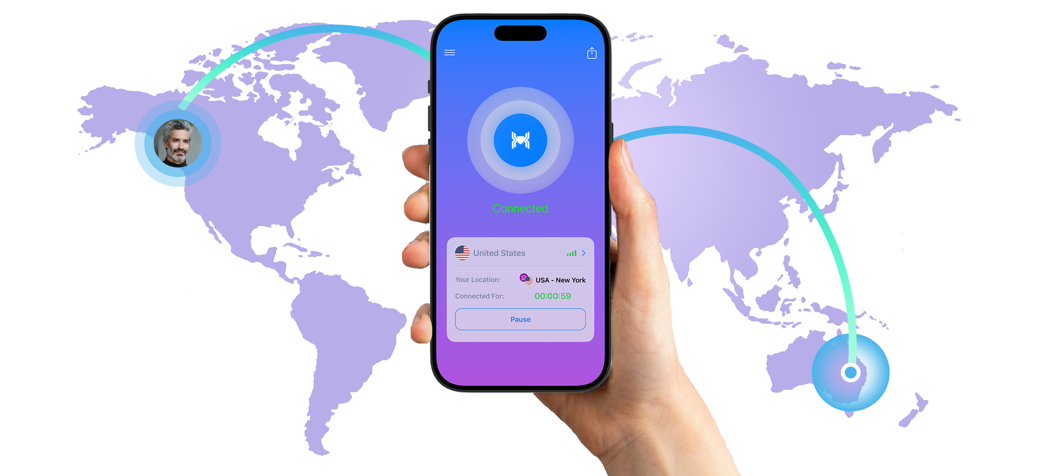 When you use a VPN (virtual private network), your traffic is routed through a secure server that hides your real IP address and encrypts the data your device sends and receives.