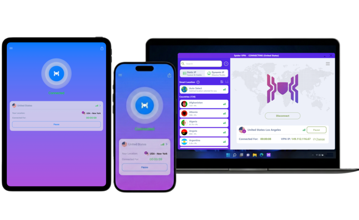 As a key technical feature of Spider VPN, dynamic IP rotation changes your IP address periodically without interrupting your VPN connection, making your online activity significantly harder to track.